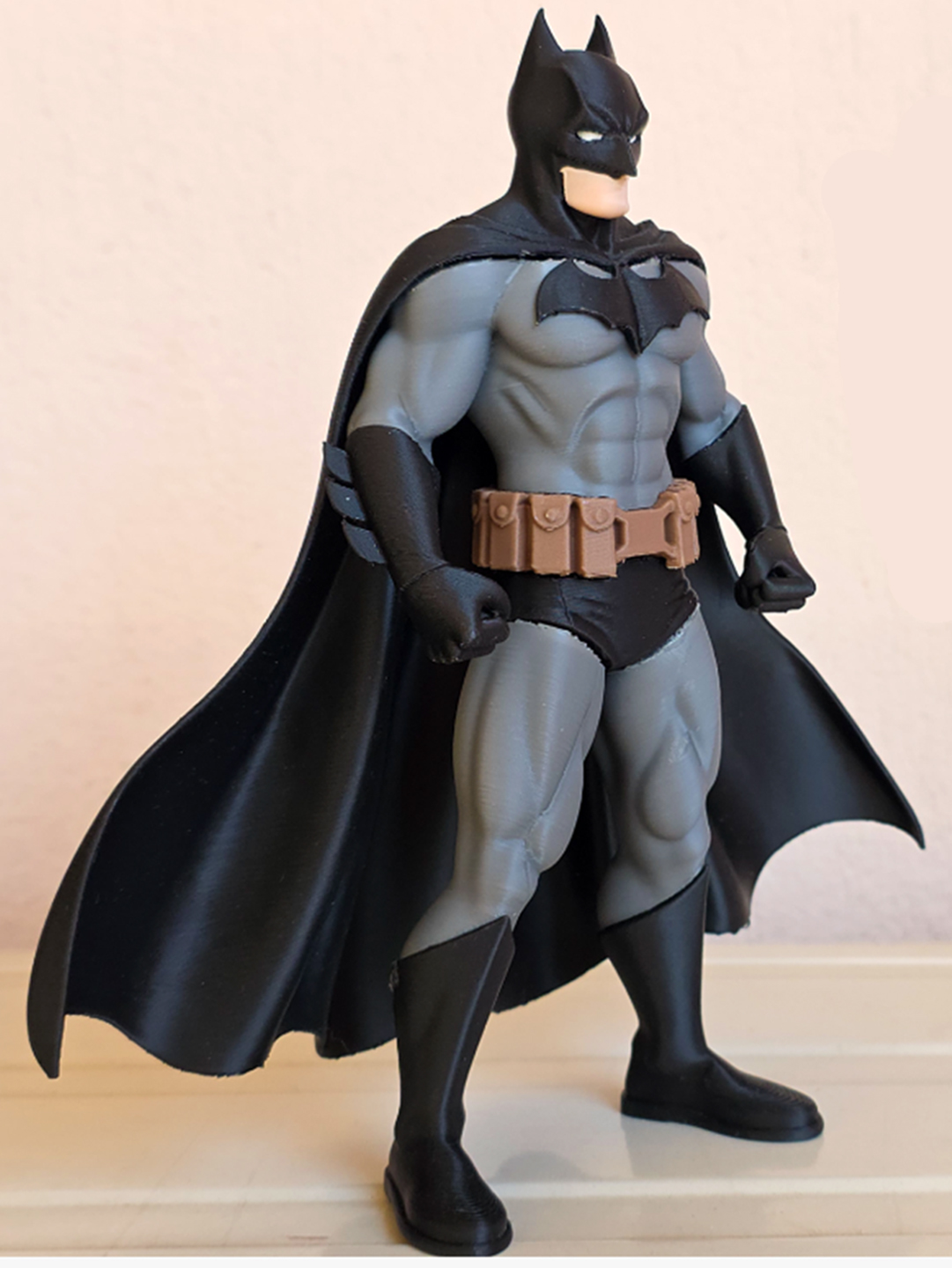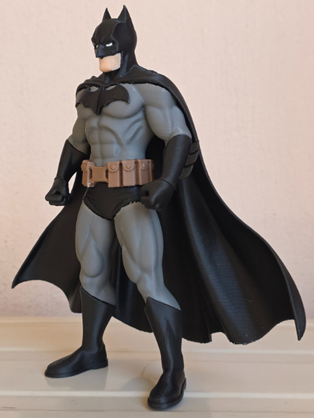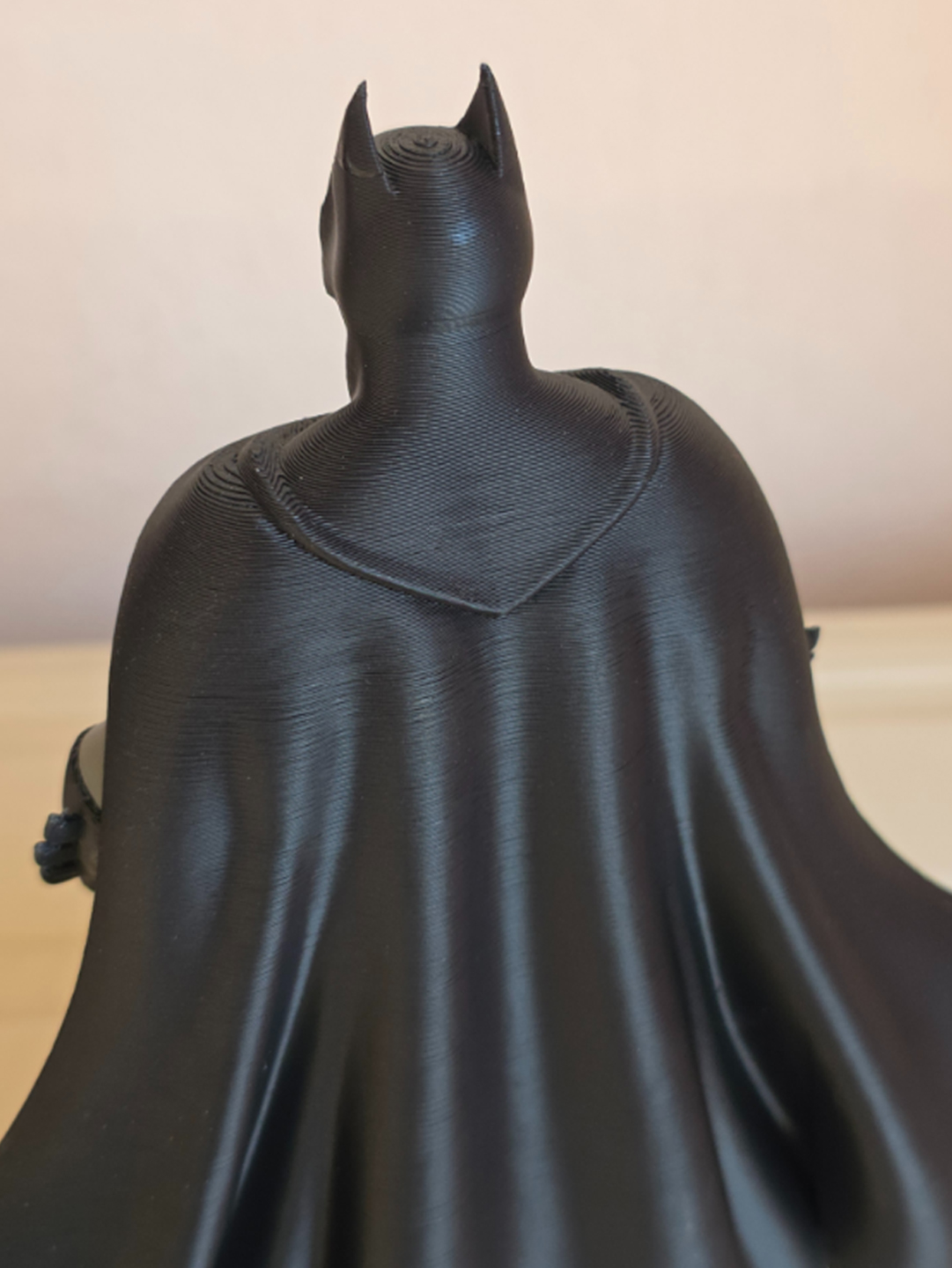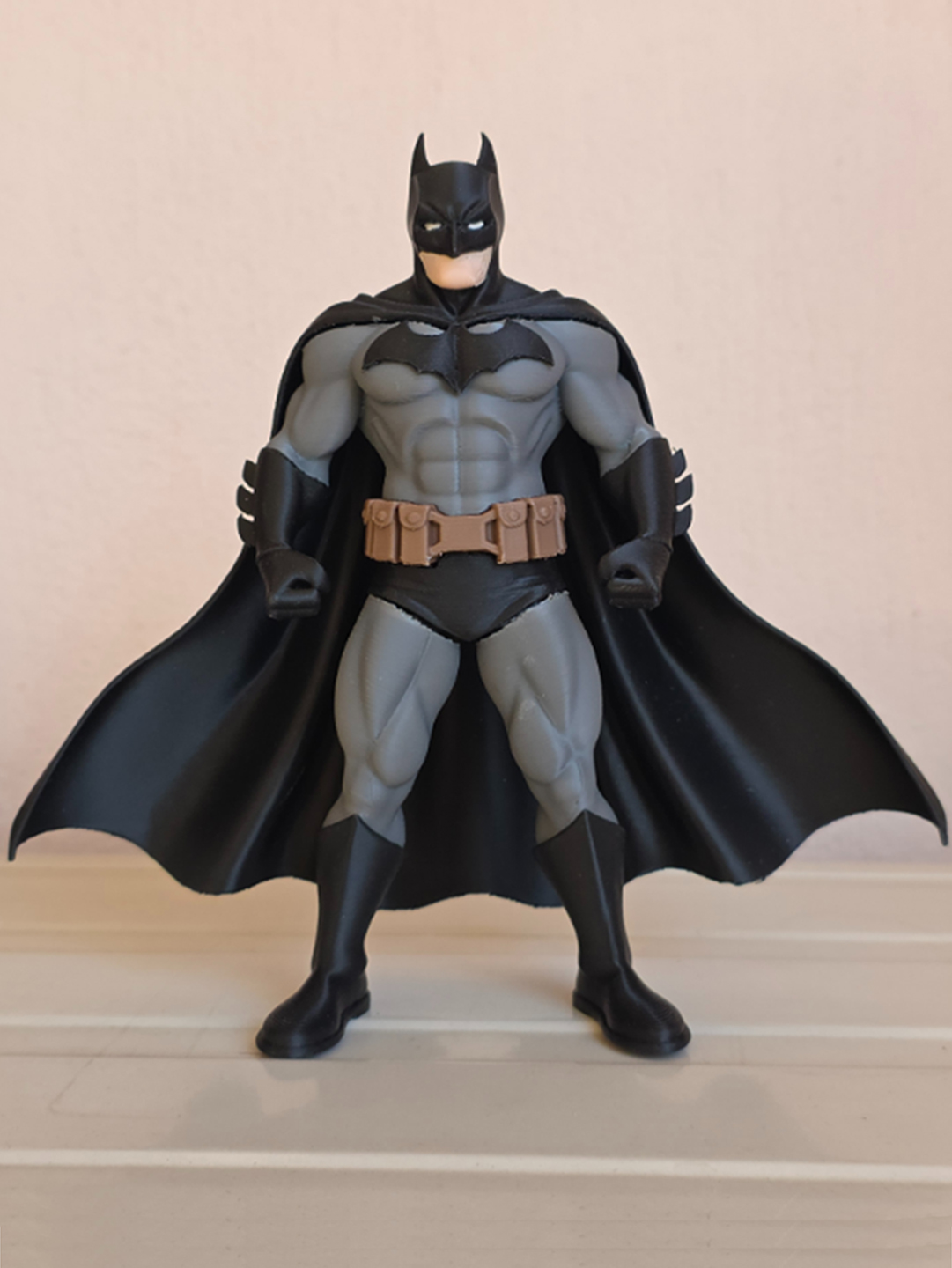 Коллекционная 3D фигурка супергероя в узнаваемом стиле тёмного защитника города. Модель отличается высокой детализацией: проработаны костюм, маска, плащ и мускулатура.