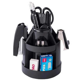 Данный товар будет полезен в офисе либо на рабочем месте дома, в нем можно хранить ручки, визитки, скрепки, карандаши, степлер, скобы для степлера и многое другое. Изготовлен данный товар из прочного пластика который прослужит долгое время.