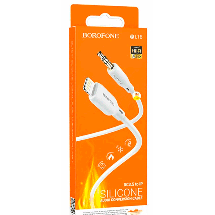 BOROFONE BL18 — это удобный аудио кабель, который позволяет подключить iPhone с разъёмом Lightning к устройствам с входом 3.5 мм (AUX).