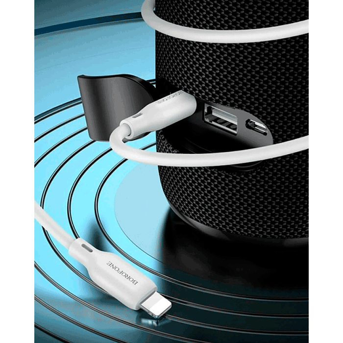 BOROFONE BL18 — надёжный AUX-кабель с разъёмами Apple Lightning и 3.5 мм Jack. Идеально подходит для подключения iPhone к автомобилю, колонке или усилителю.