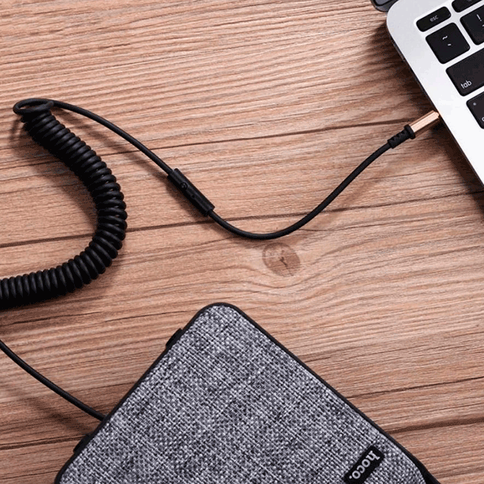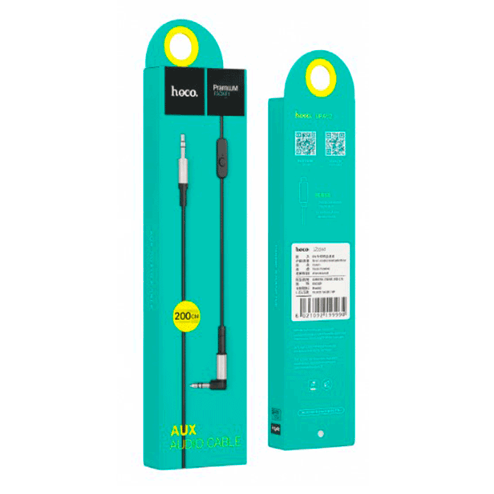 Hoco UPA02 — это многофункциональный аудиокабель AUX с разъёмами 3.5 мм Jack, одним из которых выполнен в угловом форм-факторе, а также со встроенным микрофоном и кнопкой управления.