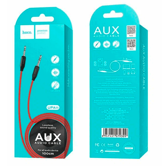HOCO UPA11 — это стандартный аудиокабель AUX с двумя прямыми штекерами Jack 3.5 мм.