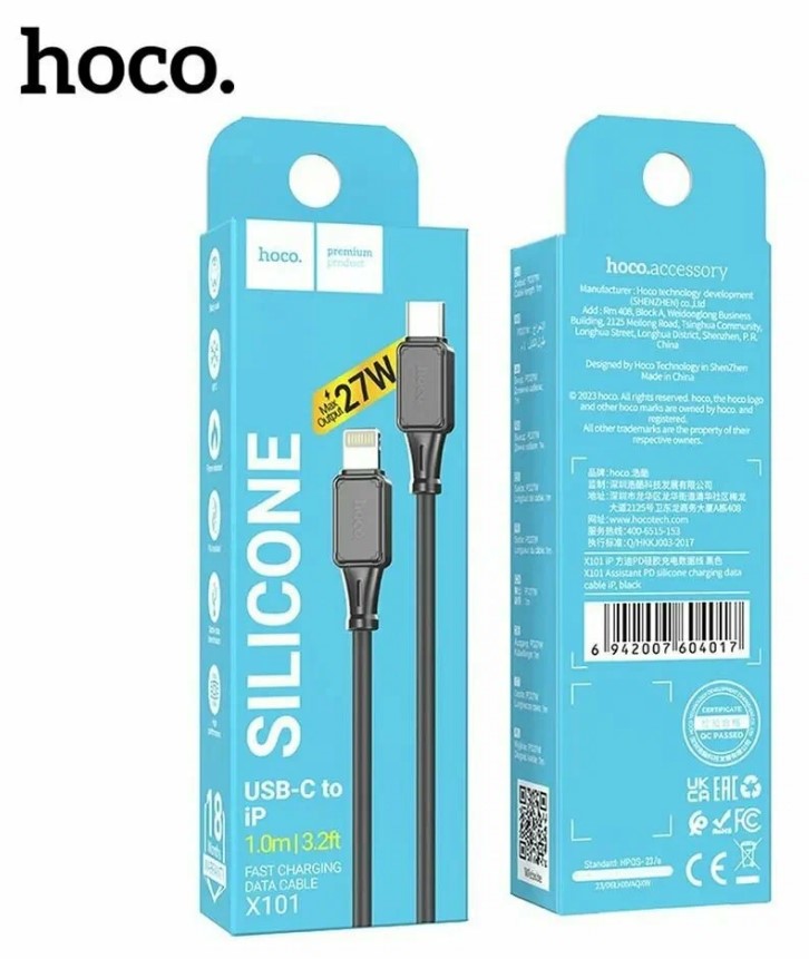 Кабель HOCO X101 Lightning на Type-C — это надёжный и современный кабель длиной 1 метр, предназначенный для зарядки и синхронизации iPhone, iPad и других устройств Apple с разъёмом Lightning через адаптер или зарядное устройство с выходом USB Type-C.