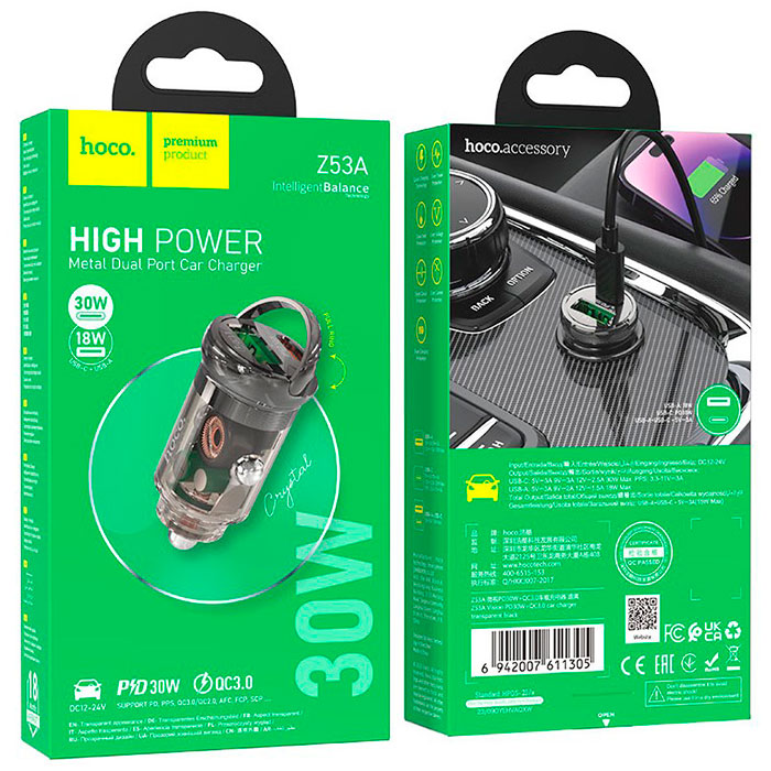 —Aвтомобильное зарядное устройство Hoco Z58A, 65Вт. 3А.