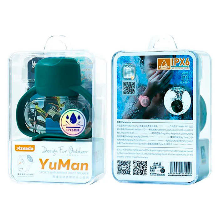 Наручный динамик Azeada Yuman — это компактное и удобное устройство, созданное для активных людей. Он легко крепится на запястье как часы, что позволяет слушать музыку и принимать звонки во время бега, тренировок или прогулок. Благодаря водонепроницаемой конструкции динамик защищён от влаги и брызг, что делает его отличным выбором для спорта и отдыха на свежем воздухе.