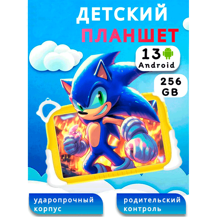 Главное преимущество — ударопрочный силиконовый чехол, который защищает планшет при падениях и удобно лежит в детских руках.