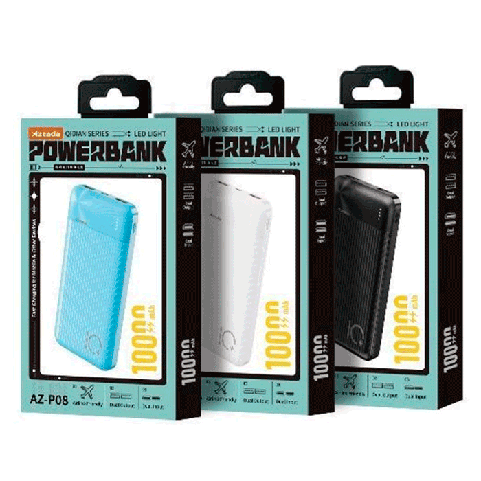 Azeada AZ-P08 — это универсальный внешний аккумулятор с ёмкостью 10000 мАч, подходящий для ежедневного использования, поездок и путешествий.