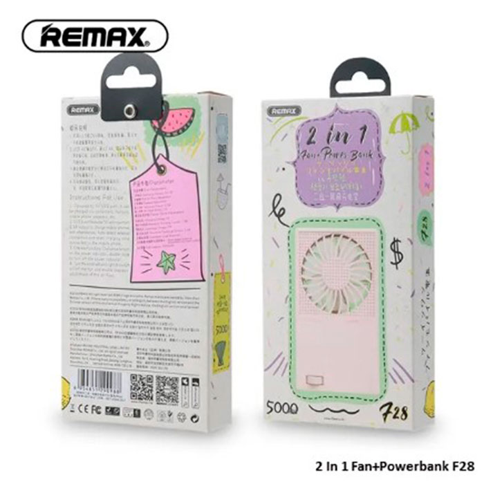Вентилятор Remax F28, Power Bank 2 в 1, 5000mAh, USB 2.4