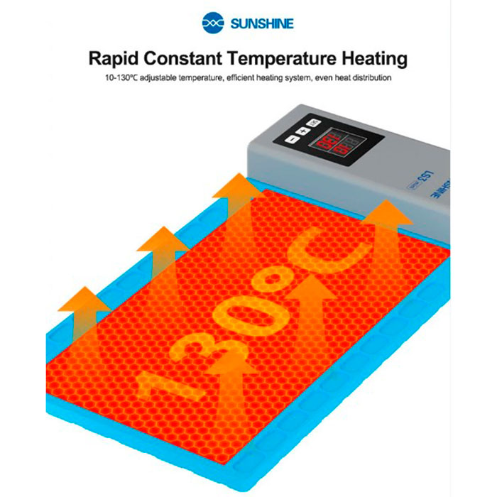 Функция: равномерный подогрев поверхности для безопасного отделения дисплея