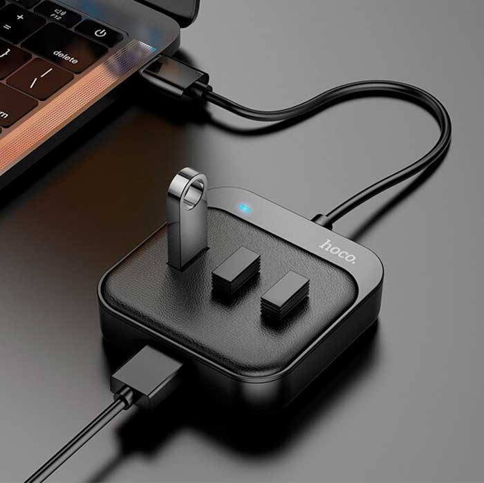 Подключите к ноутбуку хаб Hoco HB31 - и у него вместо одного USB-порта будет 4 разъема для подключения мышки, геймпада, флешки и другого USB-гаджета. Благодаря поддержке технологии Plug and Play для корректной работы концентратора не требуется установки дополнительного программного обеспечения. Просто вставляете его в разъем и начинаете пользоваться. Переходник Hoco HB31 крепкий и легкий. Его корпус изготовлен из алюминиевого сплава, обладающего высокой прочностью, устойчивостью к механическим повреждениям и износостойкостью. С одного из торцов к металлическому корпусу прикреплен длинный и гибкий кабель со штекером USB для подключения к ноутбуку. Концентратор имеет 4 USB-порта, работающих по стандарту 2.0 и позволяющих передавать данные со скоростью до 480 Мб/сек. Сможете подключить в них четыре устройства одновременно. Разветвитель можно использовать для подключения различных USB-гаджетов к компьютеру или ноутбуку. Рабочее напряжение/рабочий ток:5 В/500 мА Размер:78х25х25 мм Вес:72 г