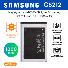 - Совместимость: предназначен для Samsung C5212 и других устройств, поддерживающих аккумулятор модели AB553446BU.
