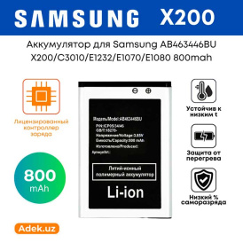 - Совместимость: предназначен для моделей Samsung X200, C3010, E1232, E1070, E1080, и других устройств, поддерживающих аккумулятор модели AB463446BU.