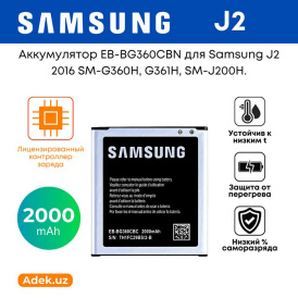 - Совместимость: предназначен для Samsung Galaxy J2 2016 (SM-G360H, SM-G361H, SM-J200H) и других моделей, поддерживающих аккумулятор модели EB-BG360CBN.