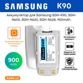 - Совместимость: предназначен для мобильных телефонов Samsung SGH-K90, SGH-N600, SGH-N620, SGH-N628 и других моделей, поддерживающих аккумулятор с такой спецификацией.