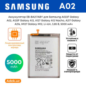 Аккумулятор EB-BA217ABY предназначен для нескольких моделей смартфонов Samsung, включая Galaxy A02 (A022F), Galaxy A12 (A125F), Galaxy A12 Nacho (A127), Galaxy A21s (A217) и Galaxy M12 (M127). Вот основные характеристики этого аккумулятора: